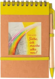 Es gibt viele Versuche, die Ewigkeit zu beschreiben, sie sich auszumalen. Die Künstlerin hat sie in strahlend warmes Gelb getaucht. Doch wie das „Alles neu“ sein wird, ist uns noch verborgen. Johannes beschreibt es so: Gott wird abwischen alle Tränen von ihren Augen, und der Tod wird nicht mehr sein, noch Leid noch Geschrei noch Schmerz wird mehr sein; denn das Erste ist vergangen. (Offenbarung 21, 4)