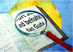 „Prüft alles und behaltet das Gute!“ meint, sich vor Neuem, Ungewohnten nicht zu fürchten, um es dann vorschnell durchs Raster fallen zu lassen. Es ermutigt, alles erst einmal anzuschauen, gewissenhaft zu prüfen und miteinander im Gespräch zu bleiben. Unmittelbar vor „Prüft alles und behaltet das Gute!“ schreibt Paulus: